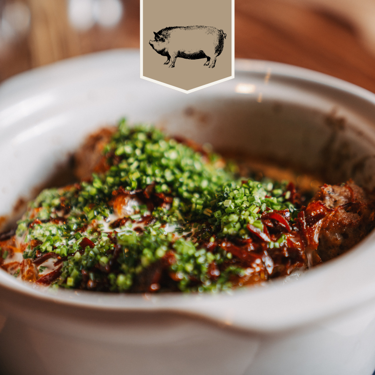 Klasszikus töltött káposzta, ahol a rizs helyét gersli veszi át, a töltelékbe pedig mangalica hús kerül, szigorúan a környékről. Lassú főzéssel készül, sűrű, gazdag szafttal – semmi csavar, csak egy elmaradhatatlan ünnepi fogás, háztáji alapanyagokból, úgy elkészítve, ahogy azt kell.